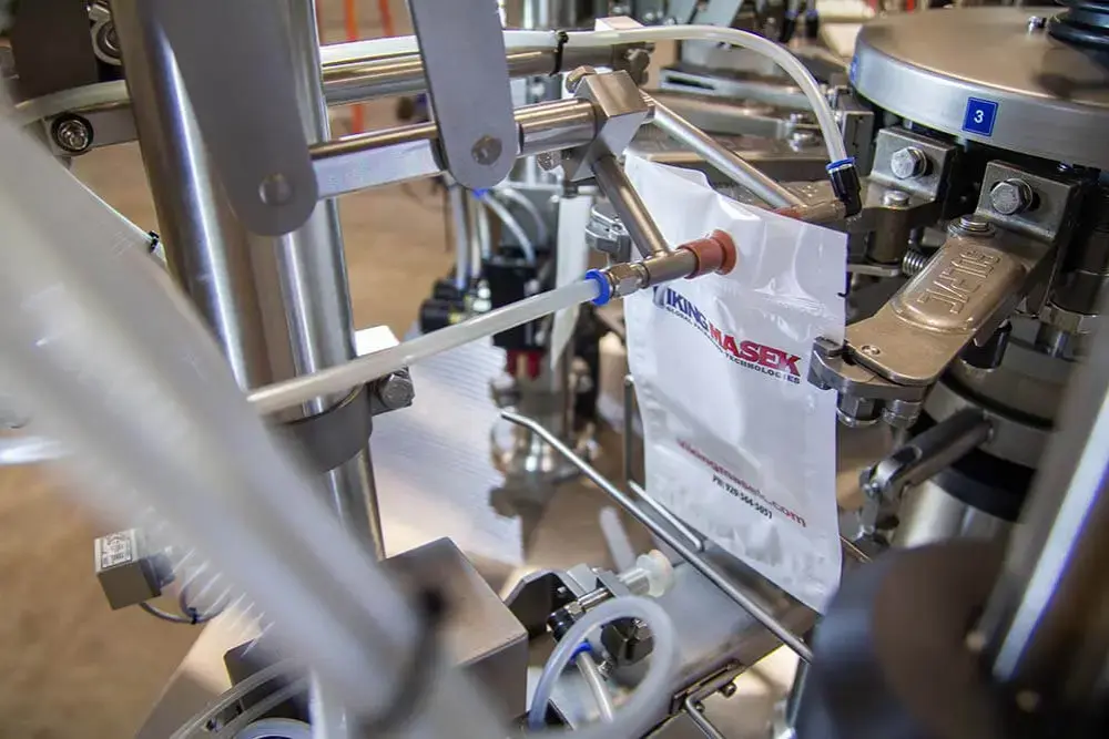 The Viking 8S-450 is a custom, high-capacity, automatic rotary premade pouch machine designed to package powders and food products into pouches up to 500 mm wide at speeds up to 40 cycles per minute. With powerful automation, rugged construction, and extensive customization options, it delivers the performance and flexibility required for demanding, large-format pouch packaging.